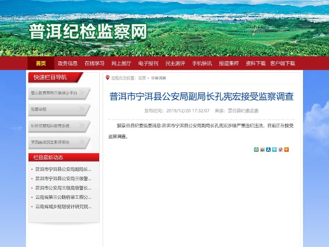 普洱市宁洱县公安局副局长孔宪宏接受监察调查