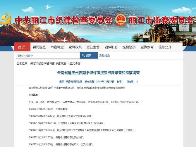 迪庆州委副书记许洋接受纪律审查和监察调查