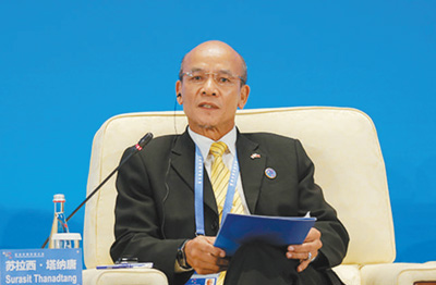 图为2019年5月15日,在亚洲文明对话大会“亚洲国家治国理政经验交流”平行分论坛上,苏拉西·塔纳唐正在发言。 |