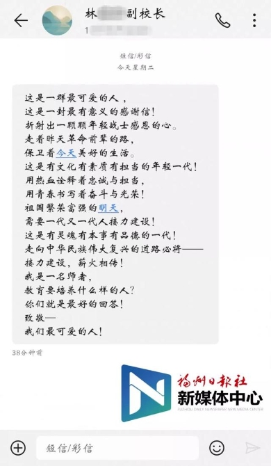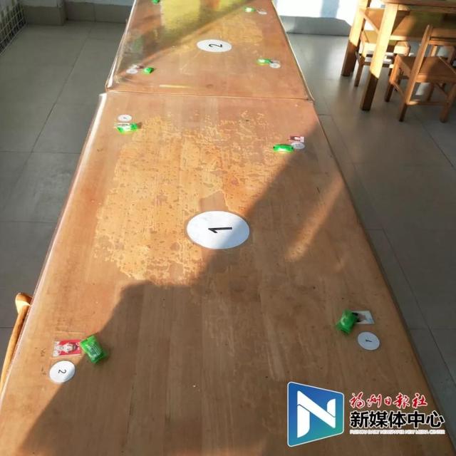 在训练第三天,官兵们借宿莆田新县镇一处幼儿园后,在每个小朋友的座位上都放了一颗糖果,并悄悄给师生们留下了一封感谢信。