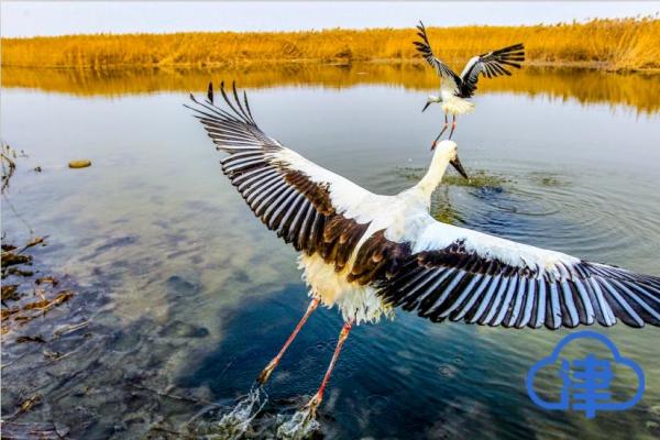 经过一系列措施,天津四大湿地生态环境逐渐恢复,如同镶嵌在津沽大地上的四块“绿宝石”,涵养京津地区水源,保护生物多样性。生态环境的好转,也吸引了越来越多的候鸟在此迁徙和停歇,每年途经的候鸟达到百万只以上。目前天津北大港湿地监测到鸟类有276种,其中国家一级重点保护的野生鸟类有8种,国家二级重点保护的野生鸟类有23种。曾在七里海消失10多年的震旦鸦雀、中华攀雀、文须雀等近危鸟类又重返七里海。世界濒危物种白头硬尾鸭,多年不见的国家一级保护物种黑鹳和大鸨,8只并不常见的火烈鸟都被发现在北大港湿地栖息繁衍。(津云新闻记者董立景 摄影马成)