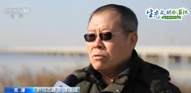 护鸟志愿者 谭建强:我们天津的志愿者在近一个月期间,每天都来到七里海观察东方白鹳的活动情况。在一个月过程中,我们发现在七里海湿地停留着500多只东方白鹳,最后获得准确的数目是597只。