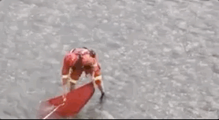 11月25日两面国旗落在四川德阳广汉新金雁大桥水底消防员下河涉水踩着淤泥将落水的国旗捞起。