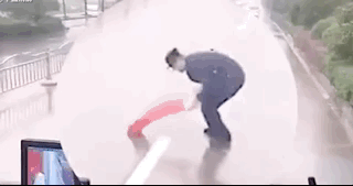 10月1日浙江宁波消防员出警归队途中看到路边悬挂的五星红旗被大风吹落,他立即跑下车将国旗仔细拾起叠好下意识地摘下自己的帽子,为国旗挡雨。