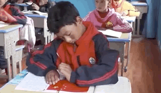 9月22日四川甘孜州石渠县一位小学生发现国旗被雨水淋湿他小心翼翼地把国旗铺在桌上用校服仔细擦拭国旗上的雨水。