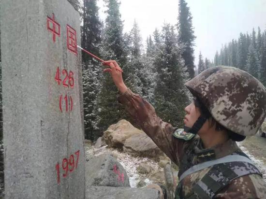 成为边防军人后我才意识到,为界碑描红是无比神圣的事。当我们在界碑前拿起笔的时候,描画的仿佛是祖国的轮廓。而描红的这群人,有个共同的名字,叫“边防军人”,只要接过这支“描红笔”,我们就接过了坚守的职责。