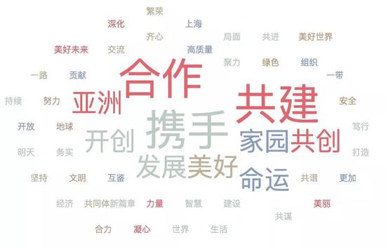 习主席在主场外交以及多边场合发表主旨演讲或重要讲话,发出的是中国声音,表达的是中国态度。通过对这些主旨演讲或重要讲话的标题进行词频分析发现,“携手”“合作”“共建”分别都出现了三次,这也印证了中国外交一贯秉持开放合作的理念。