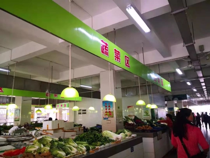 记者环顾市场大厅,各类新鲜蔬菜鲜嫩翠绿,应有尽有:白萝卜2元/斤、白菜1.89元/斤……一旁买肉的陈阿姨乐呵呵地对记者说,“政府管着菜市场,今天猪肉降了一块多钱,省下买肉的钱还可以再买一份蔬菜。”