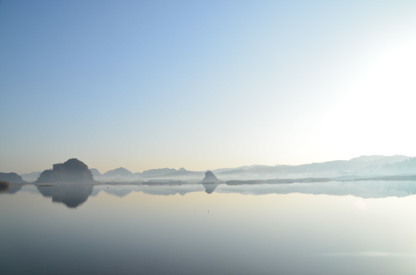 漫步在林间小道,只见湖上孤峰林立,轻舟划过湖面,候鸟悠闲飞过,冬天的普者黑,少了夏日的热闹与喧嚣,多了一分闲适与静谧。