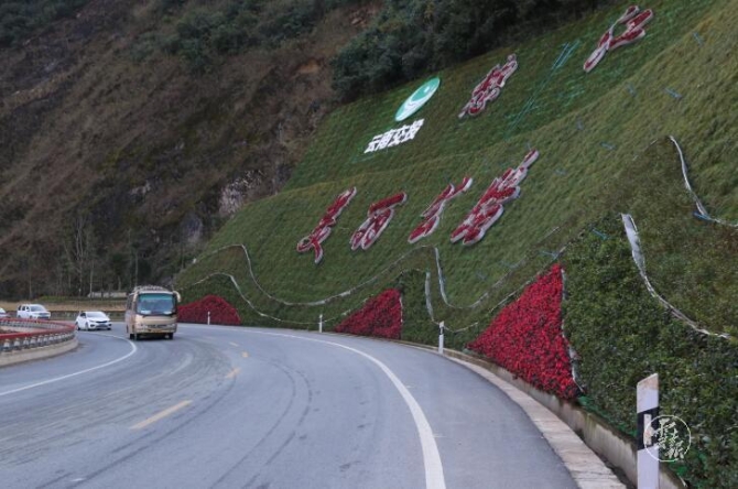 美丽公路建设中,怒江按照“交通+旅游+产业”的综合交通发展理念,同步开展路域环境整治,依法依规拆除美丽公路与江畔之间的违章建筑和破旧民居,对沿线地质灾害点、河流、山洪沟进行综合治理。因地制宜,建设一批沿江民族特色旅游村镇,遍植树木花草,打造“车在江边走,人在画中游”的峡谷公路景观。