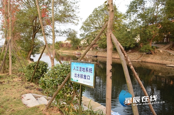 (长沙县春华镇春华山村人工湿地系统排放口,处理后可达到一级A类水质。星辰全媒体记者 岳珊 摄)