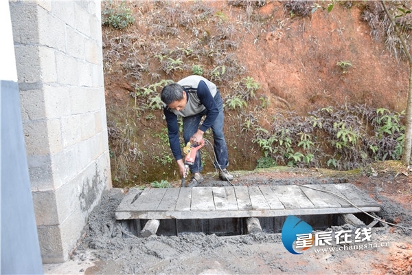 (浏阳市永安镇永和村改厕工作的施工现场。星辰全媒体记者 黄超 摄)