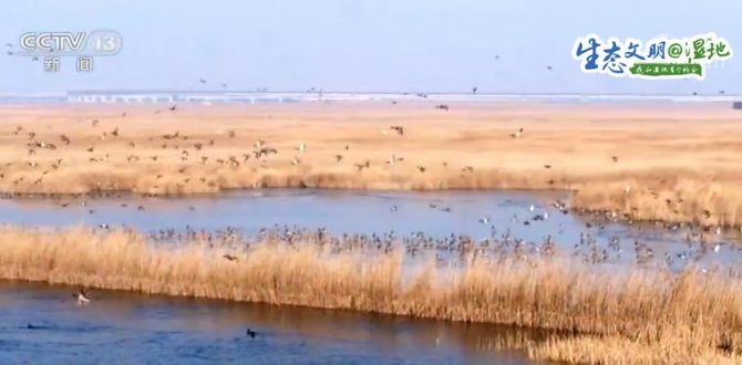 北大港湿地是东亚到澳大利亚候鸟迁徙的重要驿站,东方白鹳、天鹅、白鹭、雁鸭,成群结队的候鸟在这里落脚。生物多样性明显增加,国家一二级重点保护物种两年时间里增长了7%。有水湿地面积的扩大,生态环境的持续改善,候鸟在这里分布的范围更为广泛。