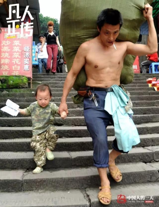十年后,这位父亲靠自己的肩膀已在重庆市区买了一套房,儿子13岁正在读初一,成了班长。
