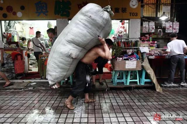 无论春夏秋冬,他都是清晨五六点出发,下午五六点到家。扛货的姿势永远不变,先把上衣脱掉,用皮肉卡住货物,防止下滑。