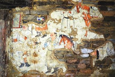 考古工作者在青海乌兰泉沟一号墓中抢救出来的吐蕃时期的墓室壁画。(仝 涛供图)