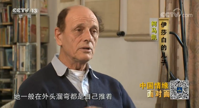 伊莎白的儿子 柯马凯:有一次以色列电视台采访我父亲,碰巧我小儿子进来了,他们说你别走,把我小儿子叫进来了,他们说你看你爷爷是英国犹太人,你奶奶是加拿大传教士家庭的,你父亲是生在北京的英国人,你母亲是生在伦敦的华人,你到底是哪儿的人?我小儿子当时大概是八九岁,他说我在英国觉得我是英国人,我在中国我觉得我是中国人,在美国我觉得我是美国人,我觉得这是我培养的目标。