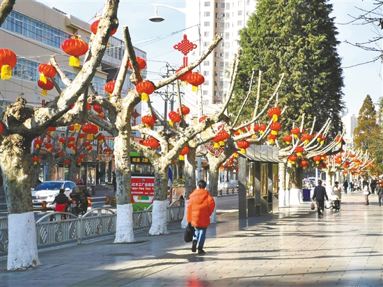 随着春节的临近,一个个大红的灯笼挂上了枝头,昭通中心城市的节日气氛渐渐浓了起来。(通讯员邓龙启)