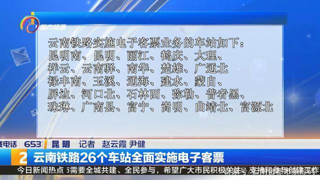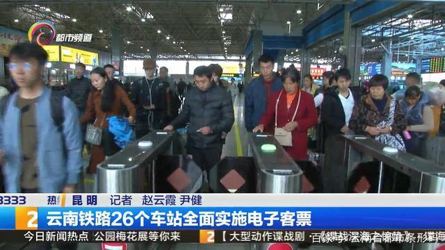 记者从中国铁路昆明局集团了解到,从2019年7月30日昆明南至大理、昆明南至丽江动车开始实施电子客票应用以来,经过5个月的努力,目前,昆明南、昆明、大理、丽江、建水、蒙自、弥勒、普者黑、嵩明、曲靖北、富源北等26个车站全面实施电子客票业务。