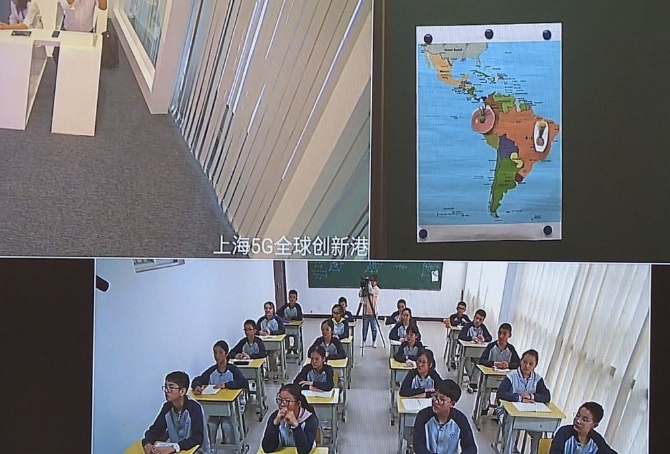 今年上半年,上海外国语大学附属外国语学校东校向云南师范大学附属丘北中学捐建价值12万元的5G应用展示及多媒体联创平台。2019年9月10日,上外东校运用5G双千兆技术,突破时空地域界限,与云师大丘北附中连线授课,分享上海优质教育资源和教学方式,沪滇两地学生在课堂上互动提问,学习气氛热烈。上海市委常委、副市长吴清在上海通过双千兆技术透过屏幕与云师大丘北附中的师生们亲切互动,向老师致以教师节的问候,并鼓励同学们好好学习。5G应用展示及联创平台,让偏远贫困县的孩子与上海知名重点名校学生同上一堂课,实现教育"精准扶贫",后续双方学校将进一步开展基于远程互动教学模式的精品课、特色课。