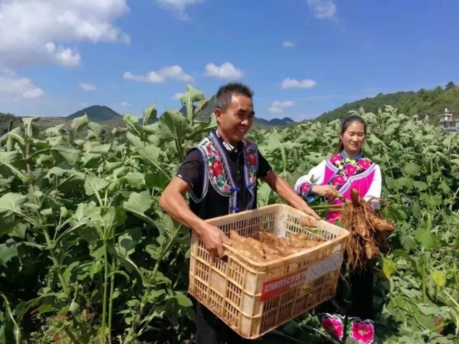今年4月26日,上海市最大的互联网企业拼多多与云南省政府正式签署《战略合作框架协议》,投入1个亿,大力推进云南特色农产品上行工作,构建种植、加工、营销一体化扶贫兴农产业链条。拼多多在丘北腻脚乡3个贫困村推动 "多多农园"雪莲果项目落地,动员141户建档立卡贫困户作为社员,并安排注册资金49.35万元,成立了丘北县阿大鲁雪莲果种植专业合作社,助力贫困地区培育发展优势农产品并形成产业优势,打造让贫困户增收脱贫的可持续发展机制。目前,全县雪莲果进入丰收采收季节,已上架拼多多农产品平台,销售情况稳中见好,将有力助推丘北脱贫攻坚工作。