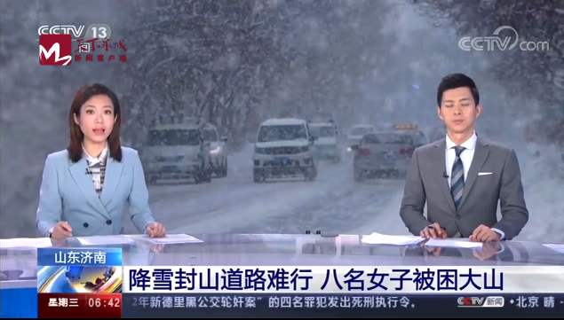 央视关注济南降雪:八名女子被困大山 济南民警出手相助