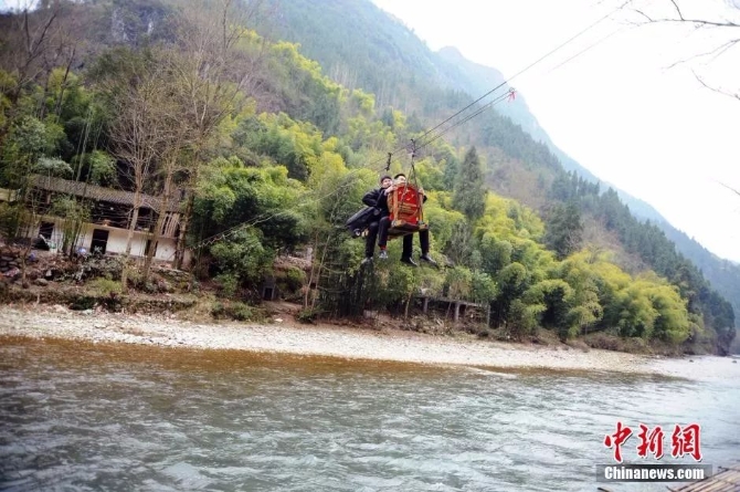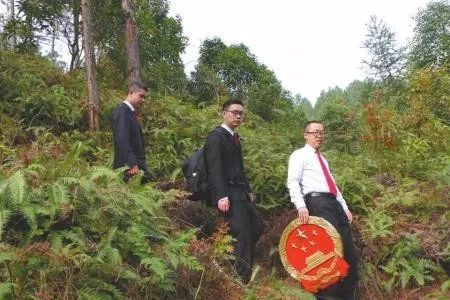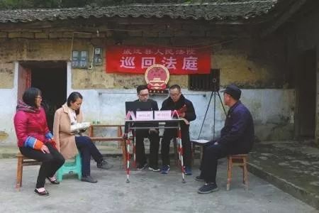 图片来源:华西都市报2018年11月,四川内江市威远观英滩镇北坪村大山里的一村民起诉离婚。威远县人民法院连界法庭庭长尹华荣入村了解情况,在得知当事人行动不便且身体不适后,尹华荣决定和同事一起将巡回法庭带到北坪村的当事人家门口。过索桥,躲落石