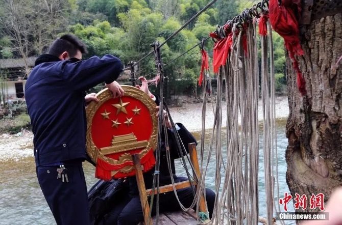 新华社记者 江文耀 摄云南怒江,交通不便。2019年年初,法官邓兴背着国徽,穿行于高山与峡谷间,过索桥,躲落石,走到村民家中或田间地头开庭判案,在家长里短的琐事中维护公平和正义。遭遇泥石流塌方、穿越雨林、溜索渡江是巡回审判中的家常便饭。他们身背国徽,冒着生命危险穿行在湍急的独龙江上,只因祖国尊严需要守护!挂上马背进藏区