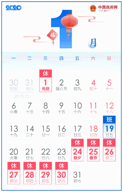 2020年春节假期就要来啦!
