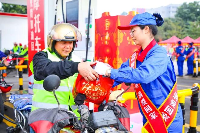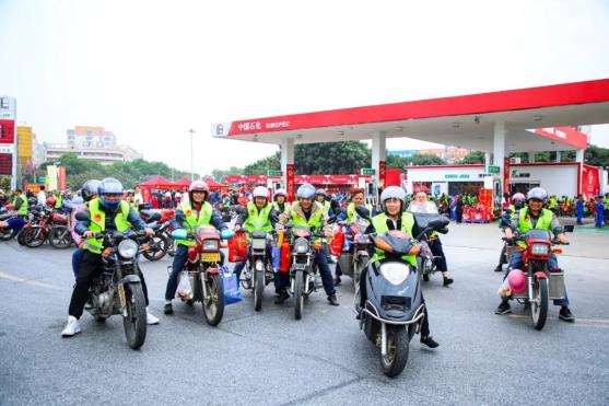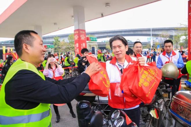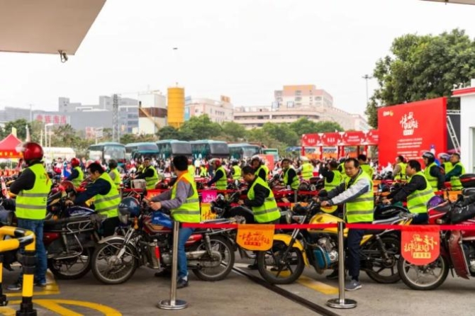 这是“情暖驿站·满爱回家”大型公益活动开展的第8年。在佛山龙山加油站现场看到,近千辆“返乡摩骑”在工作人员的指引下有序排队,等待免费加油,准备踏上回家的路。