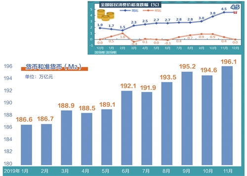 1月9日,国家统计局公布的数据显示,2019年12月份CPI同比上涨4.5%,低于市场预期。从2019年全年看,CPI同比上涨2.9%,顺利实现了2019年初确定的“全年居民消费价格涨幅3%左右”的预期目标。数据公布后,市场上有关CPI走升的预期明显降温。