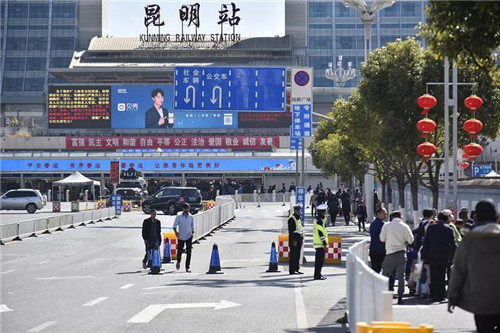 2020年春运道路交通安全工作于1月10日启动持续至2月18日。春运期间,作为昆明市重要的交通枢纽和人员物资集散地,昆明火车站及其周边道路人流、车流骤增,交通疏导保通工作任务繁重。为全力做好疏导保通工作,竭力消除道路安全隐患,守护市民回家及返程路,昆明交警针对昆明火车站周边交通流量较为集中的环城南路、春城路、二环南路和南坝路以及上述道路围合区域内道路进行统筹优化,调整勤务制度,加强警力投放和指挥疏导,采取交通管控和分流措施,全力做好春运期间昆明火车站周边区域道路保通工作。
