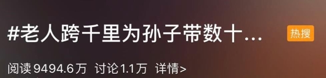 今天,#老人跨千里为孙子带数十斤蔬菜#的话题冲上热搜。