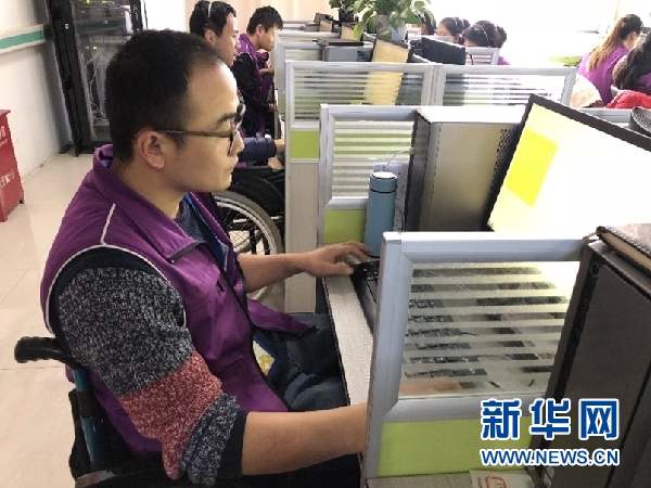 27岁的唐小鹏因先天性疾病从小与轮椅为伴。多年来,他只能依靠父母和政府补贴度日。现在成了客服人员,唐小鹏靠着自身努力,克服了手指关节变形的限制,利用键盘快捷键及时回应客户,做到了接听反馈两不误。