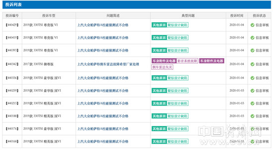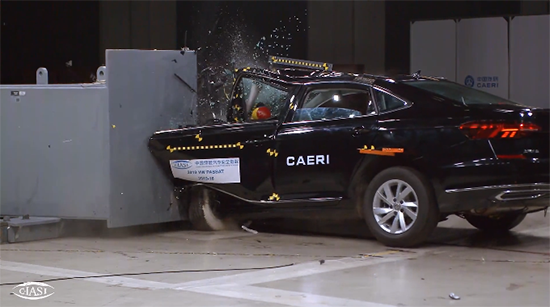 2019年12月23日,中国保险汽车安全指数(C-IASI)发布评价结果显示,在正面25%偏置碰撞中,上汽大众帕萨特2019款280TSI拿到了已测试41款车型中的最差成绩44分,A柱发生90度弯折,车体框架变形严重。