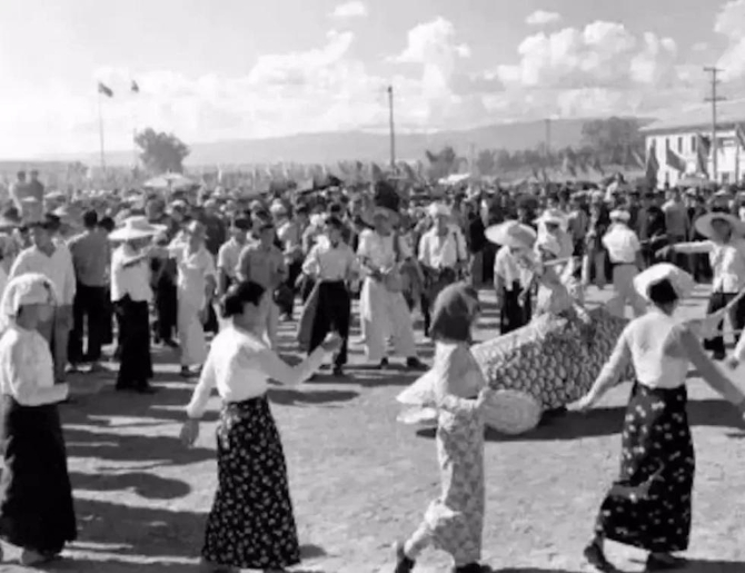 1956年12月,中缅两国边境人民在云南省德宏傣族景颇族自治州芒市举行联欢大会。