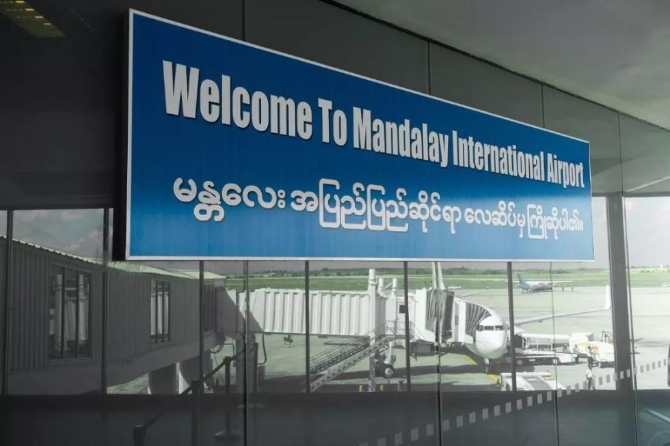 内比都国际机场附近道路插上了中缅两国国旗。新华社记者王申摄