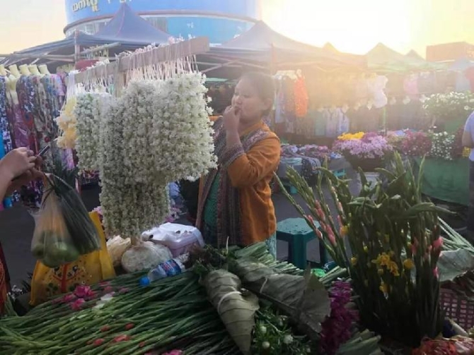 习近平主席在署名文章中说:“缅甸优美宁静的风光、绚丽多彩的文化、勤劳淳朴的人民给我留下了深刻印象。”这是1月15日拍摄的内比都集市,民众在挑选鲜花。新华社记者孟娜摄