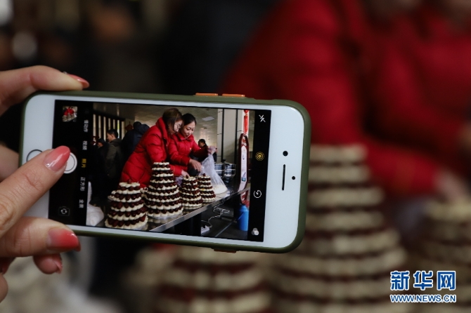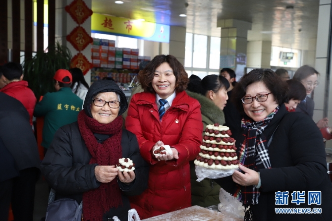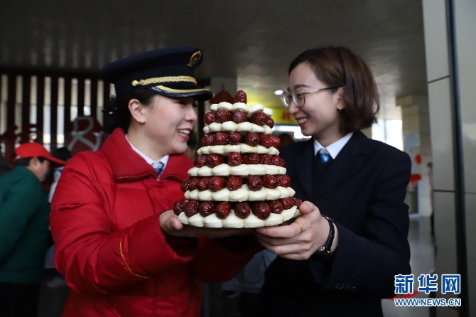 车站工作人员捧着亲手做的枣糕,满满成就感