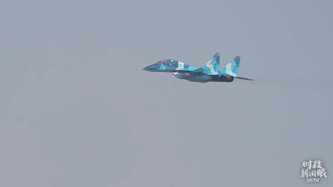 △这是从地面拍摄到的缅甸空军护航战机。(总台国广记者李晋拍摄)