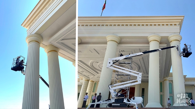 △为迎接习主席到来,工作人员几天前就做起了准备工作。(总台央视记者沈忱拍摄)