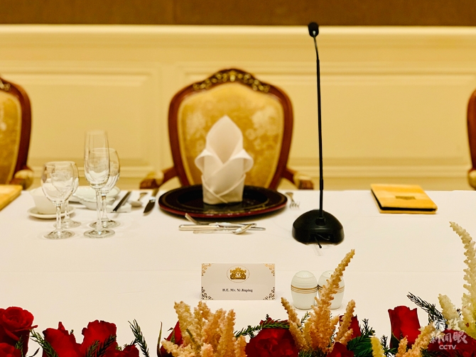 △当天,习近平出席了温敏总统在总统府举行的隆重欢迎宴会。(总台央视记者段德文拍摄)