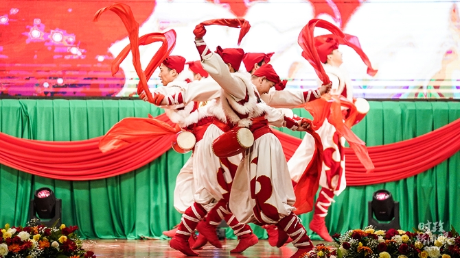 △两国领导人共同欣赏了两国艺术家的精彩演出。这是演出现场。(总台国广记者李晋拍摄)
