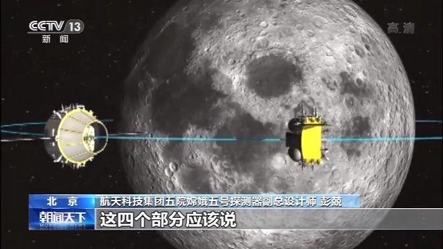 航天科技集团五院嫦娥五号探测器副总设计师 彭兢:第一部分是月面的自动采样,第二部分是月球表面的起飞上升,第三部分是月球轨道的交会对接和样品转移,最后一个部分是地球大气的高速再入返回,这四个部分技术难度相比探月一期和二期是比较大的。