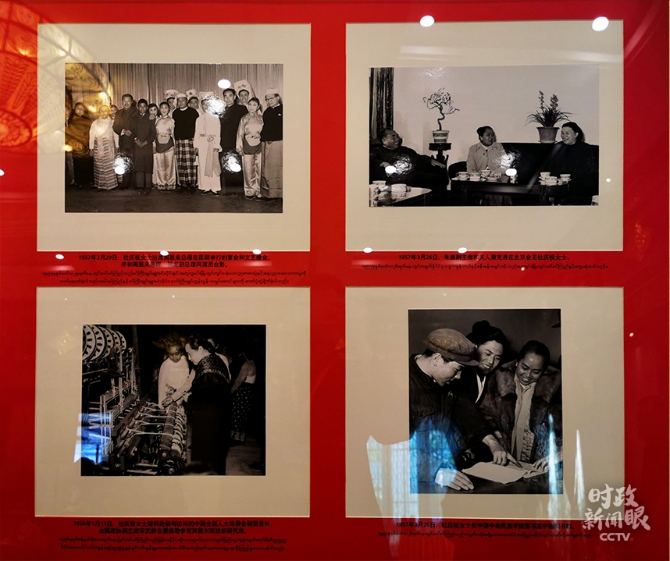 庆祝中缅建交70周年图片展展出了宋庆龄1956年访问缅甸参观纺织研究所的照片,陪同她的白衣女士就是昂山素季的母亲都庆枝。那一年,昂山素季约11岁。