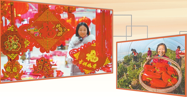 左图:2020年1月14日,湖北省襄阳市市民选购“福”字等节日饰品。杨东摄(中经视觉)