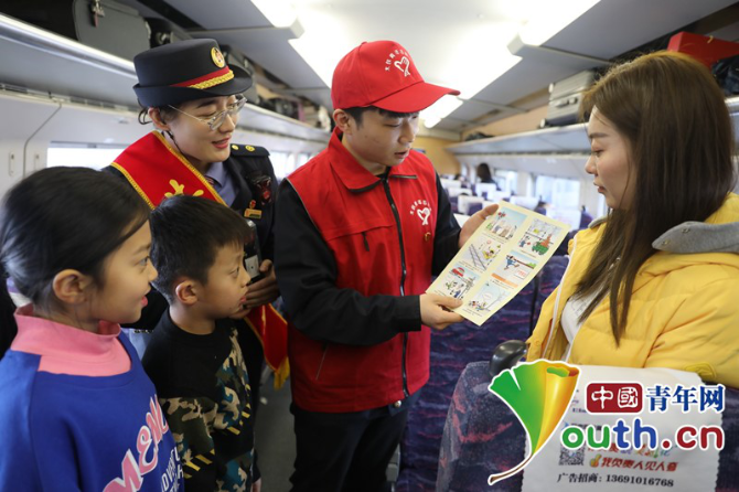 “共青团号”乘务组的青年志愿者还创作了简单易记的“动车安全歌”,并将其印制在精美的书签上发放给旅客,减少了旅客误乘误降、越站乘车,小朋友乘车途中烫伤、碰伤和误碰紧急按钮等情况的发生,获旅客点赞。