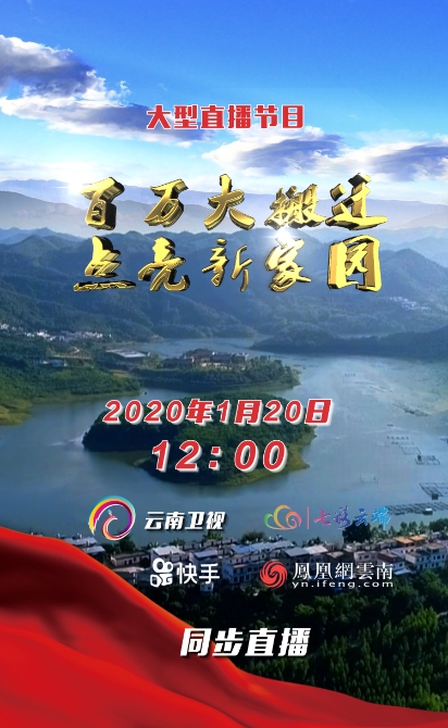 新春来临之际,云南广播电视台前往昭通市靖安新区、曲靖市会泽县、怒江州泸水市、迪庆州维西县四地进行大型直播节目《百万大搬迁 点亮新家园》,聚焦易地扶贫搬迁,去看看老乡们易地扶贫搬迁的成效,搬迁群众生产生活新变化,向全省、全国人民汇报一份成绩单,也为云南打赢脱贫攻坚战加油鼓劲。届时,云南广播电视台卫视频道、七彩云端APP、快手APP、凤凰网云南将同步直播。