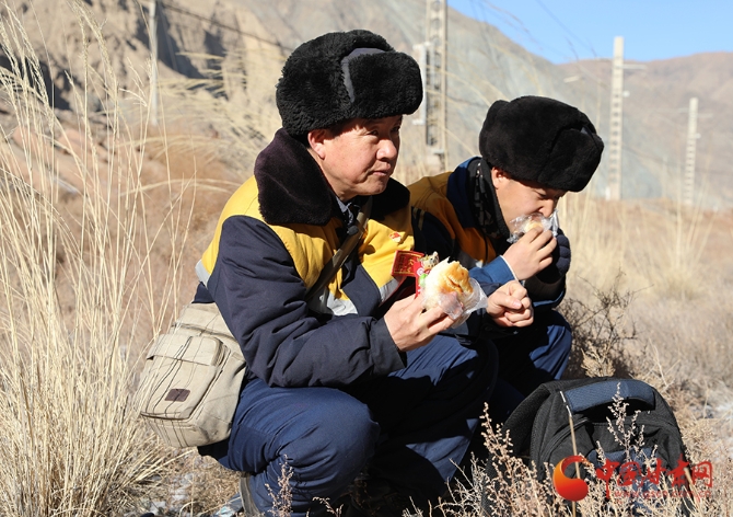 连续三个小时的不间断检查,李宏仁有些疲惫。他领着工友们走下线路,找了个避风的犄角旮旯席地而坐,开始补充能量。
