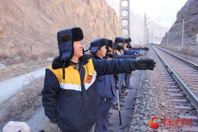 11时50分,作业开始,李宏仁叮嘱大家穿上厚厚的工作服,扛着笨重的工具,迎着刺骨的寒风,行走在荒凉的山谷间,徒步检查线路超限处所。